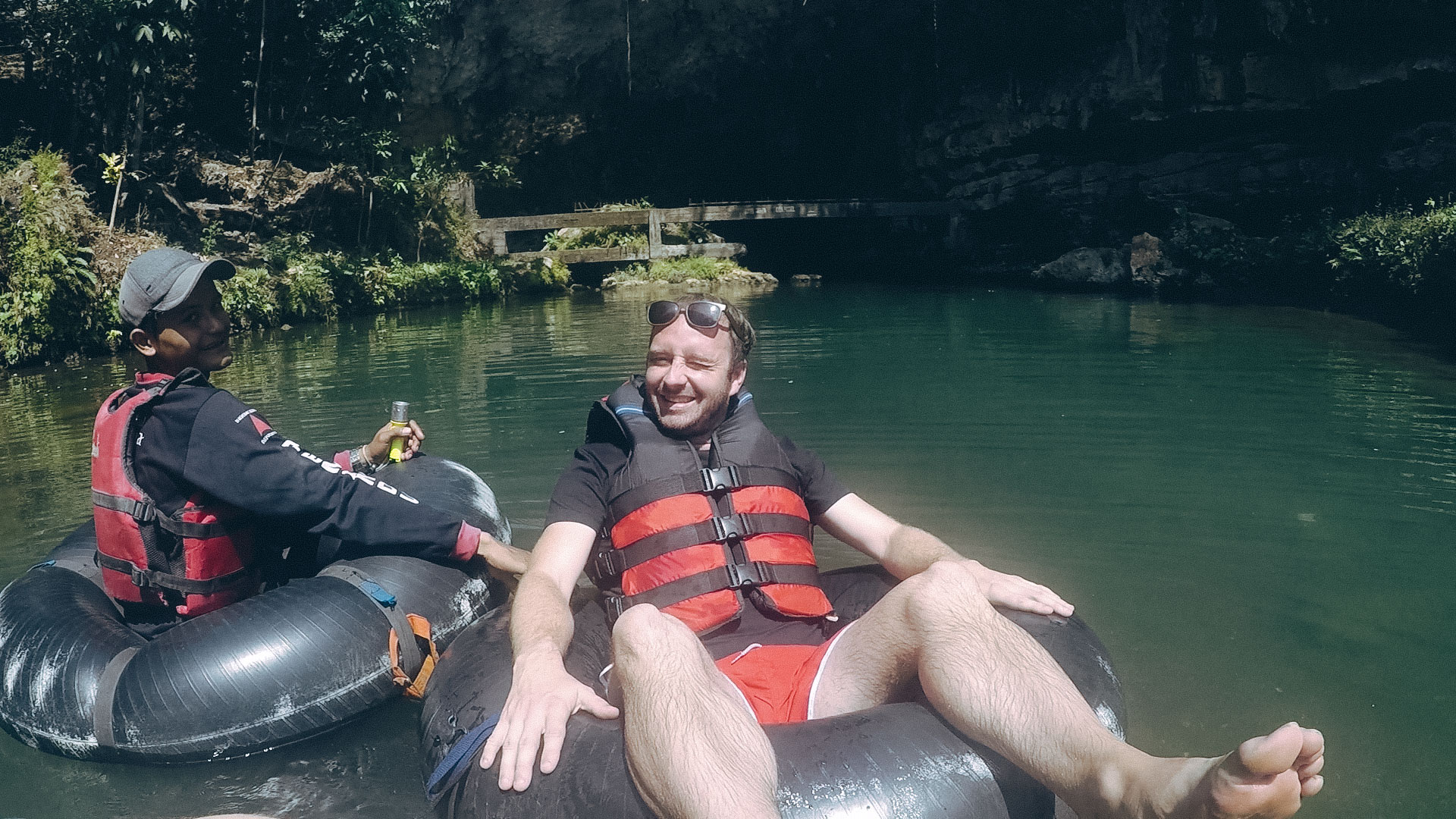 We swam our way out of the cave, before boarding a rickety old trailer to the lazy River Oyo. Back on our dingys, we floated through a small river gorge, the blue water dancing with sunlight, swallows, dragonflies and butterflies. We even spotted an iguana sunning himself on the banks. Waterfalls trickled and cascaded down the rock walls, and we splashed and played around to cool down in the lunchtime heat.