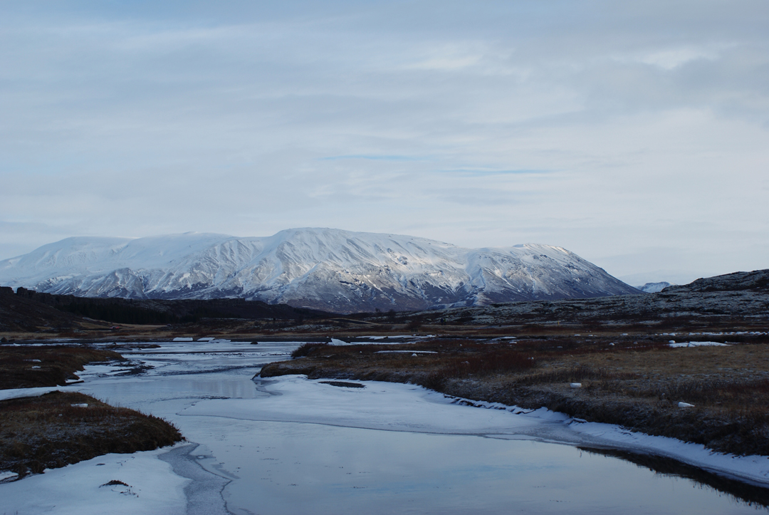 Approaching the park reveals a huge plain, bounded by mountains, glaciers and empty horizons. The sun shimmered high in the sky and snowflakes gently danced in the crisp air. Chunks of ice littered the ground, carried downriver from the distant glaciers. Some parts of the boardwalk had broken with the force of the ice blocks. Further ahead, a cleft in the rock revealed a mirror-like pool, glittering with coins thrown in by passing tourists. It looks like a magical treasure trove from a pirate film, and it’s here that you can see what the earth looks like as it’s pulled apart from underneath.